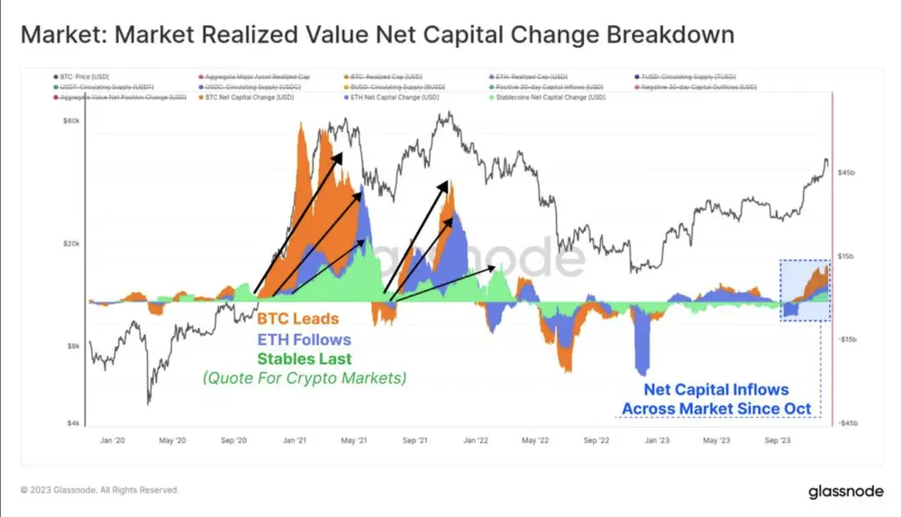 ) Analysis of changes in working capital in BTC and ETH and the total supply of stablecoins. These three indicators help visualize and measure relative capital flows and rotation between sectors. October stands out as a key month with inflows into all three assets turning… : 2 : 0