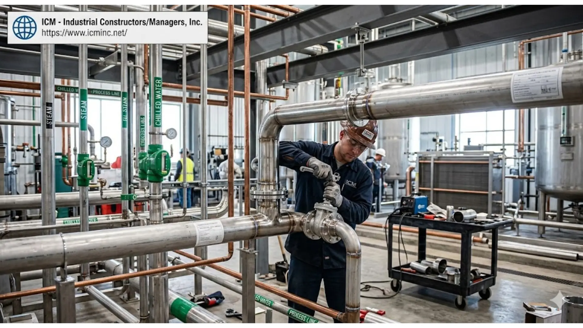 Master industrial process piping with ICM. Learn about ASME standards, fabrication, and expert installation for pharma, food, and aerospace facilities.